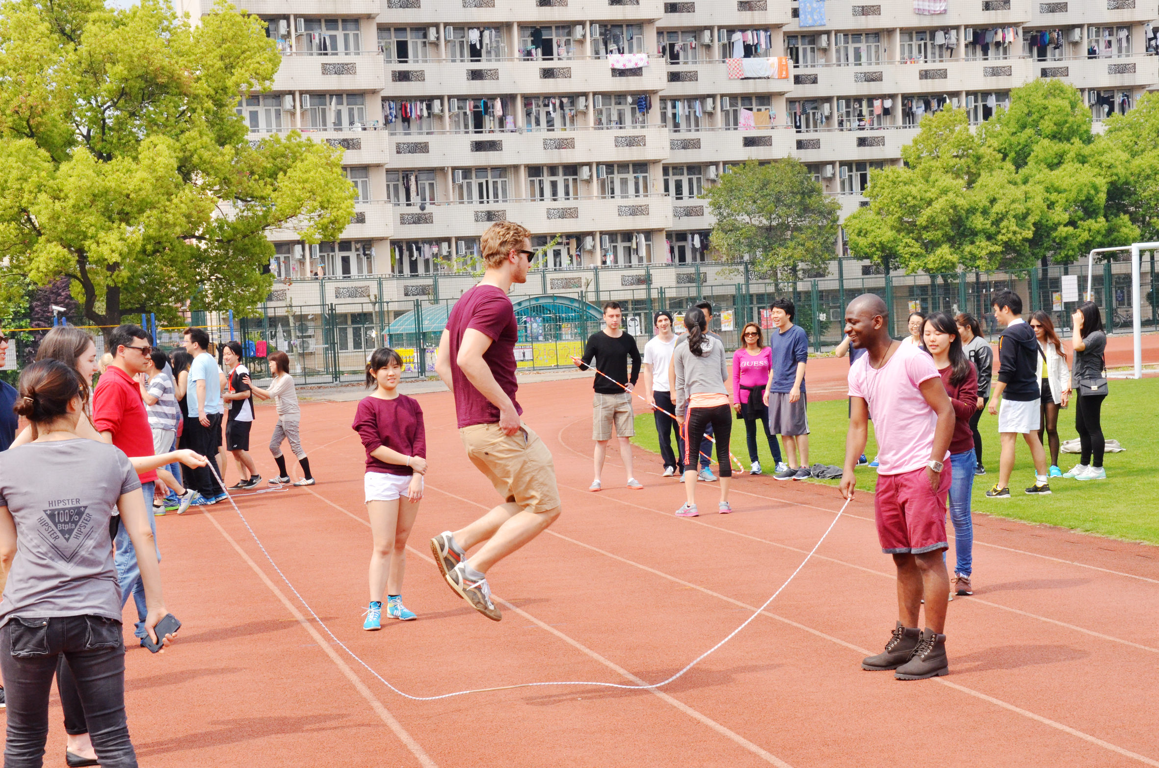 我院于2015年4月22日成功举办了第十一届“腾龙杯”留学生体育节,有近20个班级代表参与。