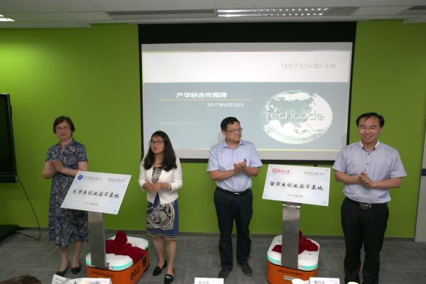 2017年6月20日,在太库科技上海中心2周年成立庆典仪式上,东华大学留学生创业实习基地正式挂牌设立,这是我校和科技创新企业合作建立的首个留学生创业实习基地,未来我校留学生将可依托该创业实习基地进行高科技创业或进入张江高科的众多企业进行教学实习。张江高科技园区管委会李景烨副主任、学院吴小军副院长共同为基地揭牌。国际项目部顾尘尘老师等受邀参加活动。