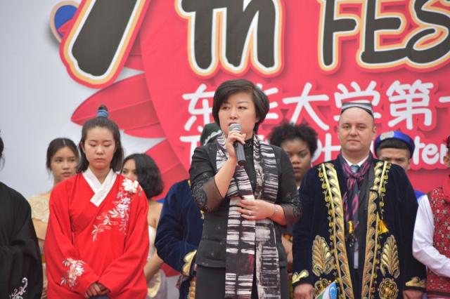 刘春红在开幕式上热烈欢迎各国使领馆、企事业来宾来校参与国际文化节。她说,学校建校66周年来,一贯重视国际交流与合作,特别是外国留学生的培养,至今已培养了3万多名留学生校友,各国留学生们毕业回国后活跃在教育文化、国际贸易、政府部门等领域,为世界各国的发展,为中外交流做出了重要贡献。近年来,学校确定了留学生教育的发展任务和目标,要不断提高留学生培养质量,大力发展高层次留学生的招生和培养,要在国家一带一路建设、上海市具有世界影响力的科技创新中心建设、自贸区建设以及学校创建世界一流大学和一流学科的背景下稳步推进。我校留学生积极参与校园文化活动,在全国留学生留动中国比赛中取得优异成绩,2016年成为首批通过来华留学质量认证的27家大学之一,学校的国际影响力进一步增强。