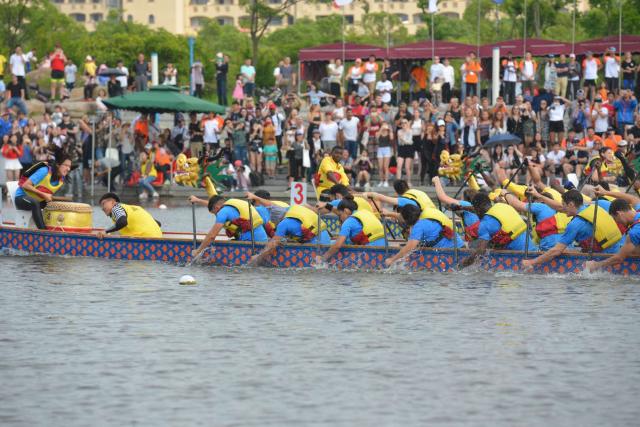 在精彩的开幕式后,龙舟赛正式开赛。我校留学生龙舟队由来自乌兹别克斯坦、阿塞拜疆、哈萨克斯坦、马来西亚、喀麦隆等17个国家的20余名留学生组成。我校龙舟队伍以预赛小组第二的身份进入决赛。预赛后,队员们积极讨论技巧及战术,一次又一次的喊着比赛节奏,保持最佳状态进入决赛,队员们个个热情高涨、蓄势待发,最后以54秒36的好成绩获得本届龙舟赛第四名。