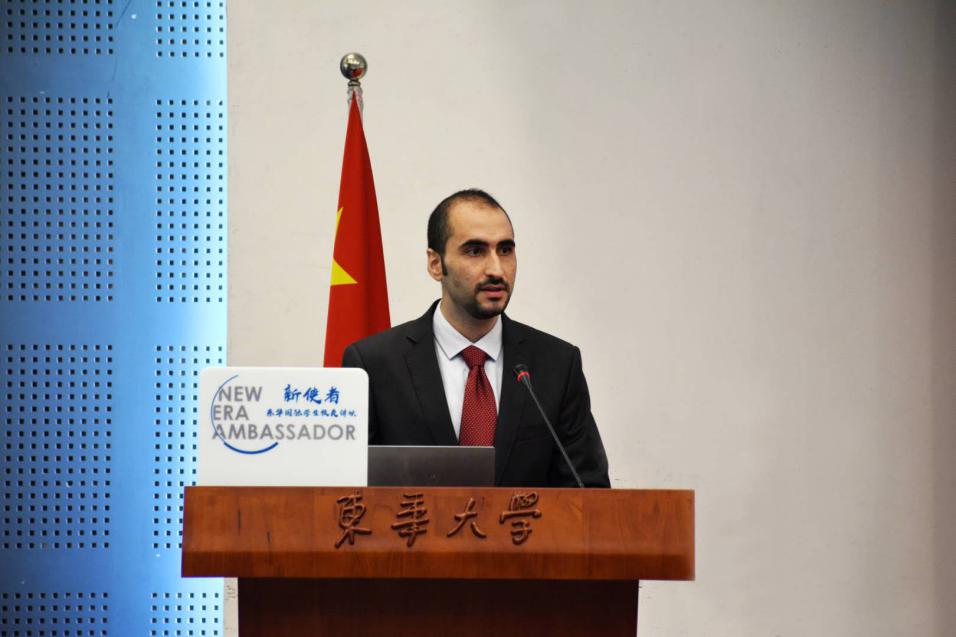 纺织工程专业优秀博士毕业生宏博(叙利亚)就如何提高学术研究水平,如何规划在东华的留学生活,做了《信念、梦想、奋斗——我的东华留学生活》的主题演讲。
