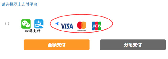 분할 수 설정 후에 지불 방식 (微信、支付宝、VISA/MasterCard)을 선택해주세요. 지불 방식 선택 후에 파란색 버튼을 눌러 결제를 완료해주시고 몇 번으로 나눠 결제하신다면 각각 결제를 완료해 주셔야 합니다.