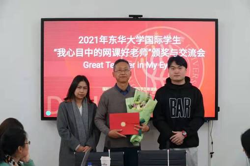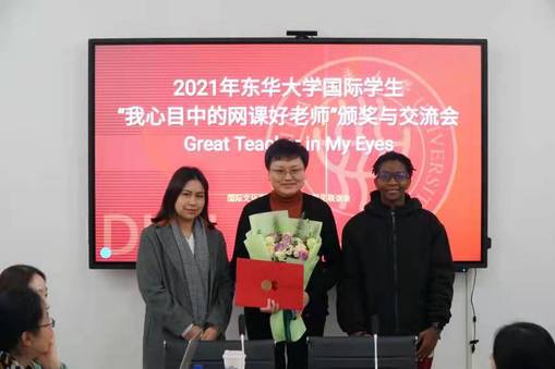 前期,国际学生联谊会组织境内外国际学生开展网络投票,推荐评选东华大学国际学生“我心目中的网课好老师”活动,最终有来自14个学院的30位教师入选。颁奖活动上,老师们说:“能够得到学生的认可, 是做教师最大的骄傲。一定做好教学工作,让学生在东华感受到成长,学有所得。”