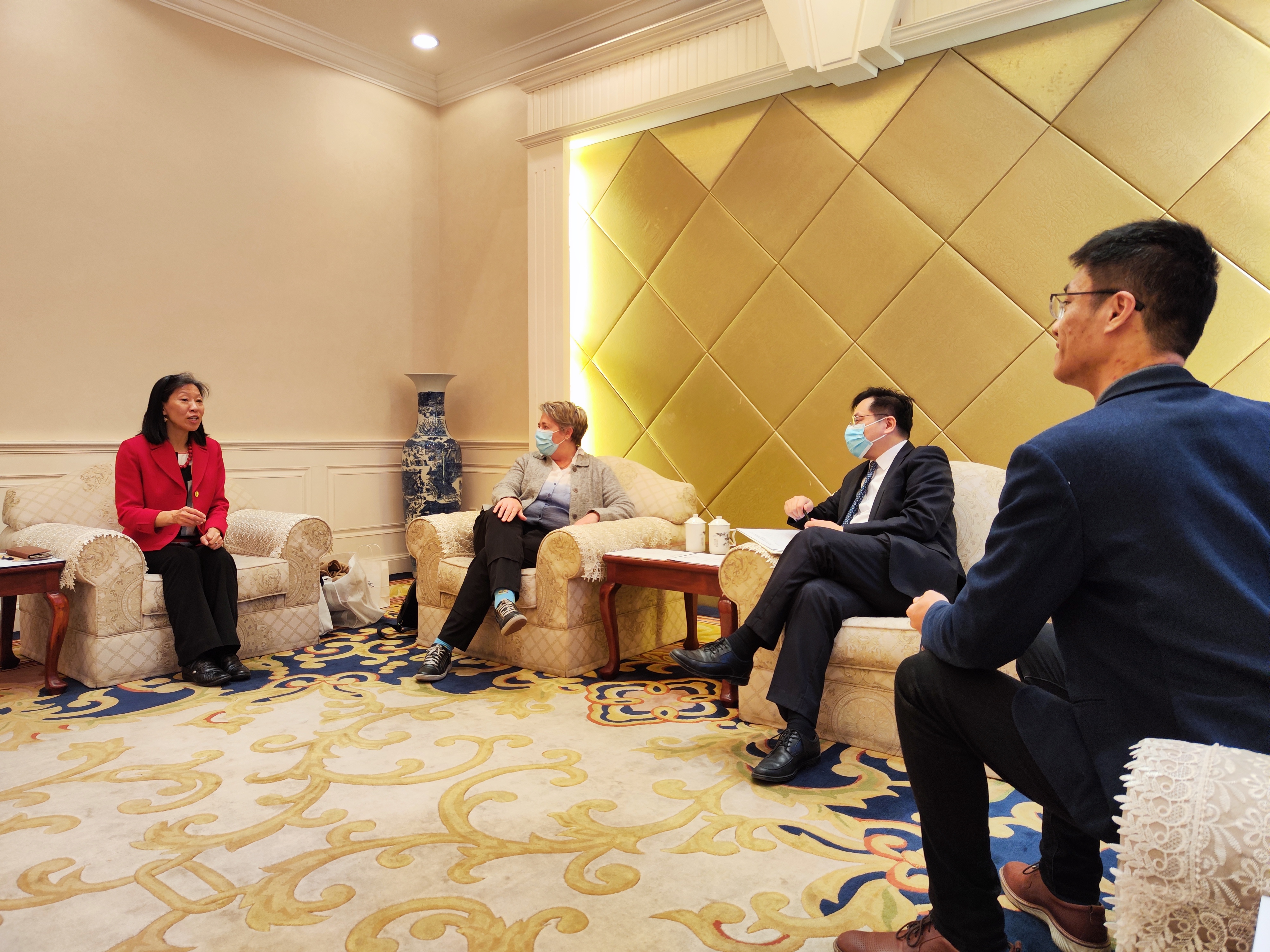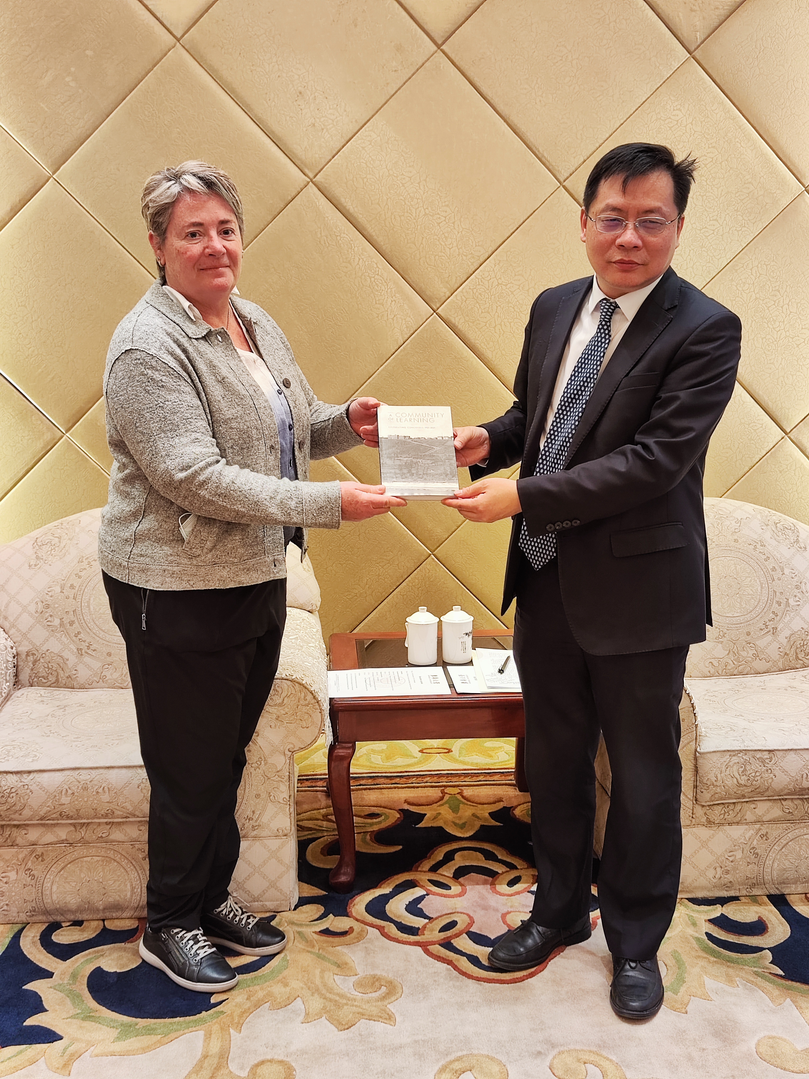 12月13日,加拿大埃德蒙顿康考迪亚大学副校长柯漫、国际处兼中国语言中心主任方欣欣来我院访问。本次来访旨在沟通双方合作事宜,为明年中文项目及教学合作做准备。副校长赵震、国际处副处长杨升元等接见了访问团,就两校的校际合作进行了深入的沟通。随后,两位嘉宾参观了学院行政区、宿舍区、国际教育中心大楼教学区,观看了汉语中心“一月一展”的主题展览,并就长短期项目合作等议题进行了细节磋商。