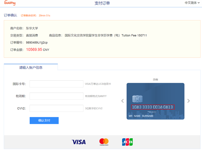 注意:如果你选择使用信用卡支付费用,需承担约3%的手续费,该费用由相应银行因政策要求产生,非学校进行收取。实际付款总金额将对应显示。