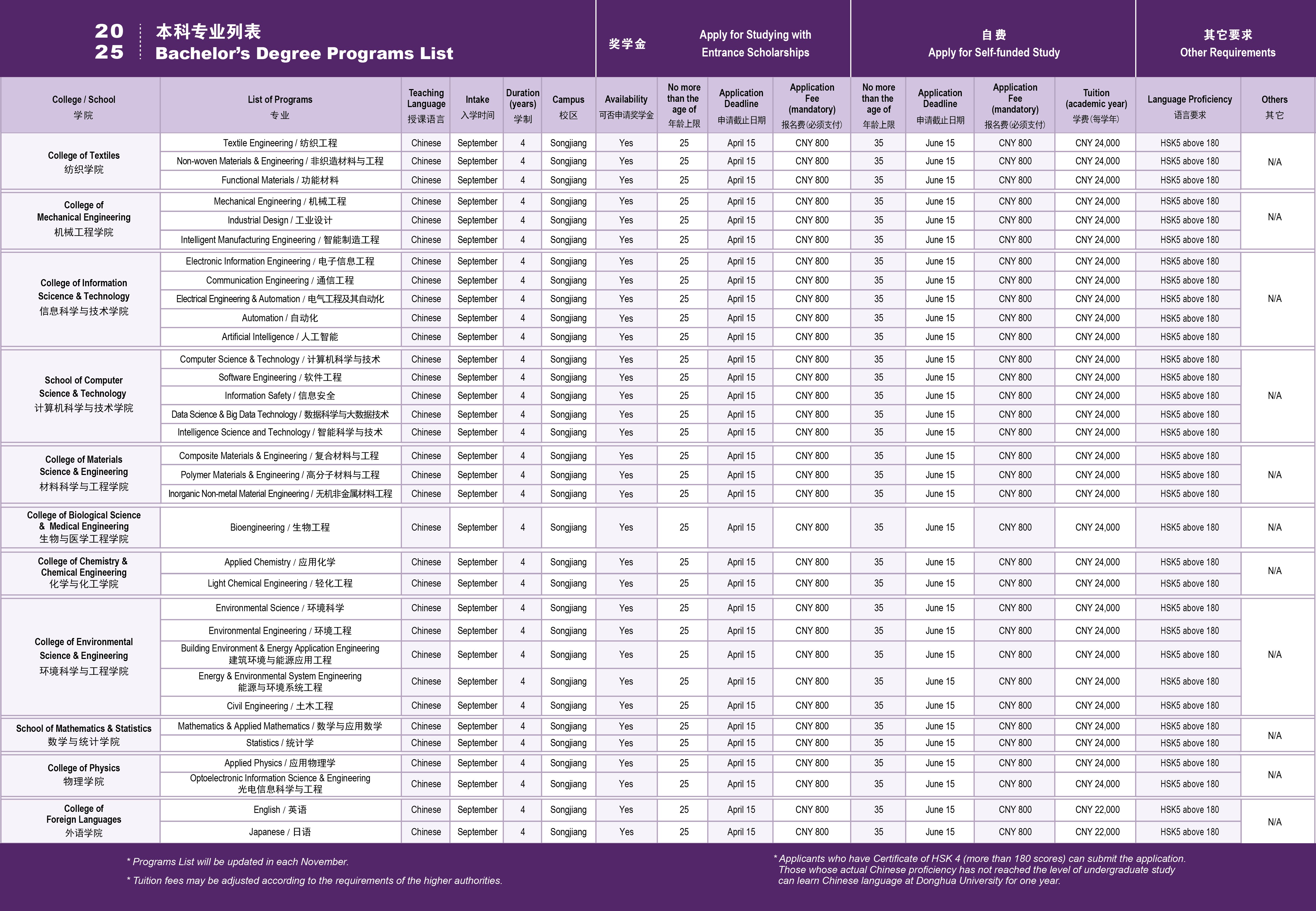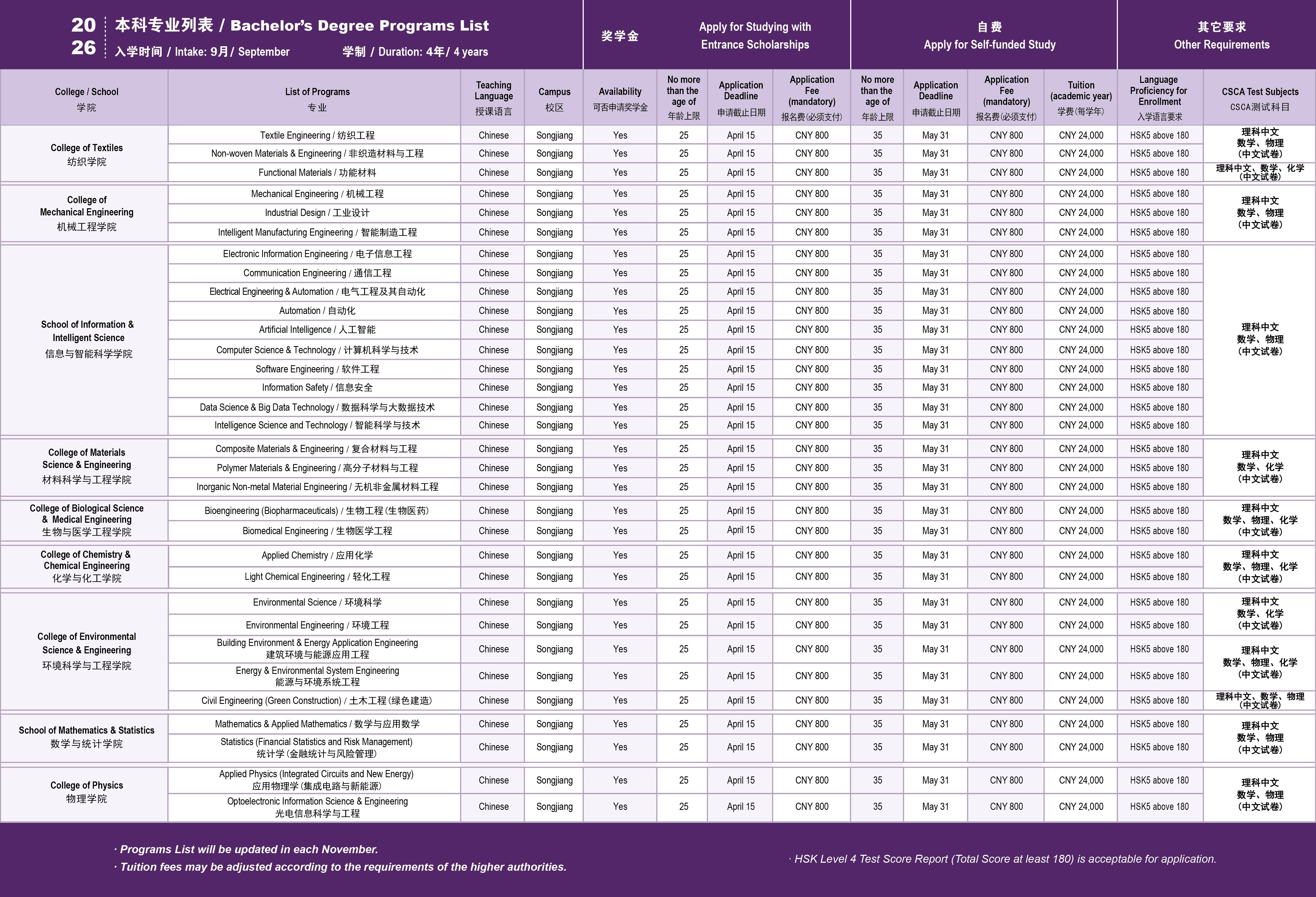 1)此链接中均为中文授课的本科专业介绍,包括专业的培养目标、主要课程、专业特色、(中国学生的)毕业去向情况等。除少数几个专业外,其他本科专业均向留学生开放,详情请参考紫色表格。