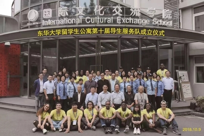 东华大学国际学生导生服务队(RA是活跃在国际学生公寓楼的一支由国际学生老生组成的队伍,包括20多名来自不同国家的成员,可以提供中、英、日、韩、法、西、俄、泰、蒙、印尼语、老挝语等多种语言服务,从而指导新入住的同学尽快熟悉校园环境和在东华大学的学习生活,及时帮助同学们与相关部门沟通解决在公寓内遇到的相关问题。